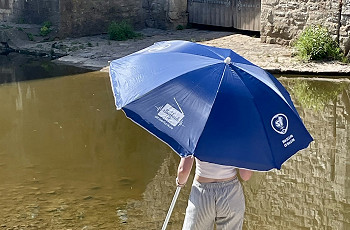 Der Sonnenschirm für Strand, Freibad oder Sandkasten. In praktischer Tasche zum Mitnehmen. Leicht und gut verpackt! PVC mit UV Schutz!