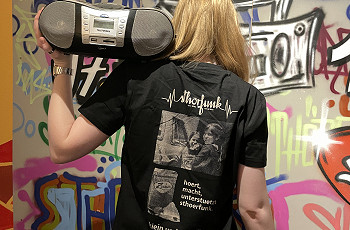 Unser Klassiker. Aktuelles StHörfunk Logo groß auf der Brust. Bio und Fairtrade!